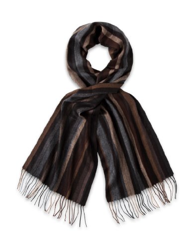 VB Écharpe, classique - marron clair, marron, gris, noir - a rayures, effrangé