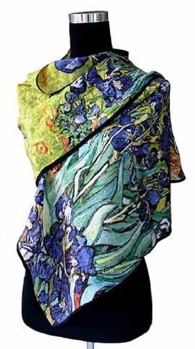 Prettystern P841 - 160cm Foulard Echarpe Soie Art van Gogh Fleurs Impressionnist - Iris / Schwertlilien