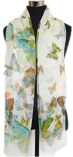 Prettystern - 165cm long 100% écharpe en soie - papillons - blanc
