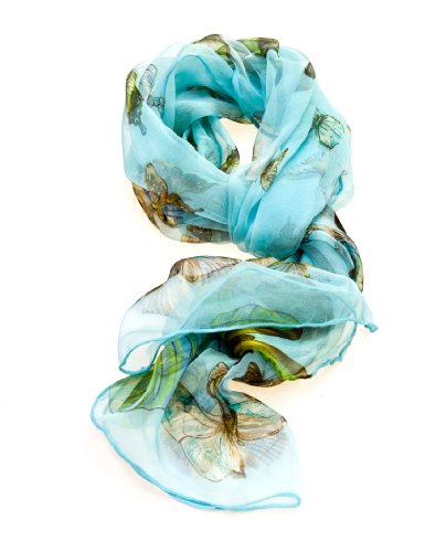 Handbag Queen UK Comparateur de Prix, Handbag Queen UK Comparatif Prix, Handbag Queen UK - Echarpe bleue Imprimé papillons - Femme - 100% Soie - A porter dans toutes
