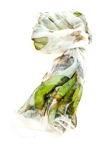 Handbag Queen UK - Echarpe blanche Imprimé papillons - Femme - 100% Soie - A porter dans toutes les occasions; Echarpe - Femme