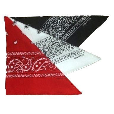 Lot de 3 foulard bandana américain tour de cou paisley USA - Rouge + noir + blanc - Country cowboy moto hip hop outdoor