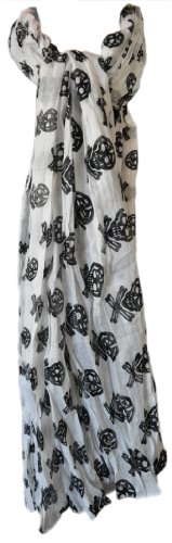 Chèche / Echarpe / Foulard "Tête de Mort" Fond blanc avec motif tête de mort en noir avec ce foulard / grand carré "Tête de mort" 100% coton à enrouler
