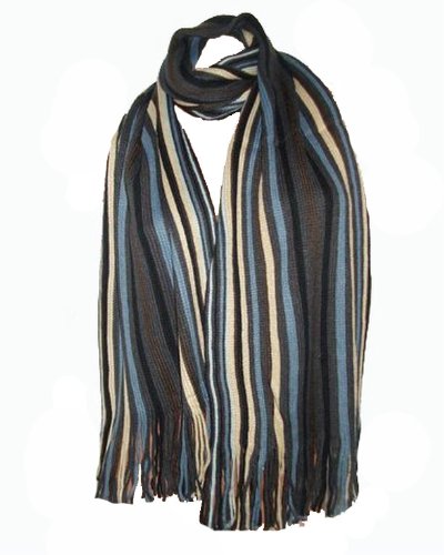 Écharpe Foulard chèche Homme Femme Rayures - Marron gris bleu
