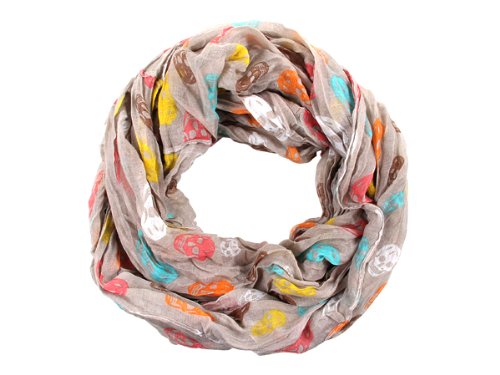 'col-écharpe écharpe-tube snood boucle écharpe d''été col tube Foulard accessoire vêtement vacances fashion femme, :SCH-339d Scull marron gris'