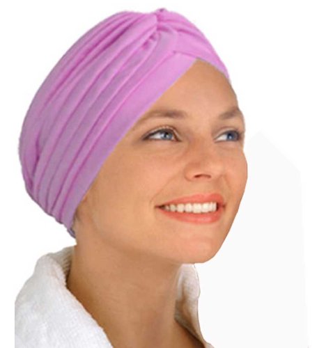 Comfy Doux pink turban which covers all around including the hairline. Great for patients with hairloss.