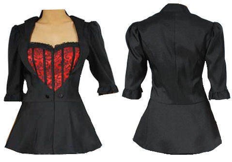 Noir et rouge (lolita mock jacket)top Top corset bustier ou veste victorien classique cache-coeur noir rouge tailles jupe taille haute ou un corset