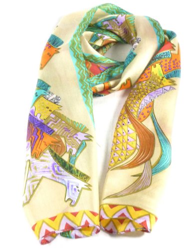 Foulard en Soie Imprimee Echarpe Longue cheval Vintage 170*100cm ( Neuf Marketplace ) Écharpe en 100% Soie - modèle chevaux de course, 130cm ( Neuf Marketplace )