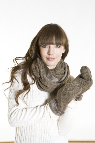 Ensemble écharpe tube et moufles en tricot - motif torsade - femme - 56cm - 58cm: Ensemble écharpe tube et moufles en tricot thermique et chapeau ensemble
