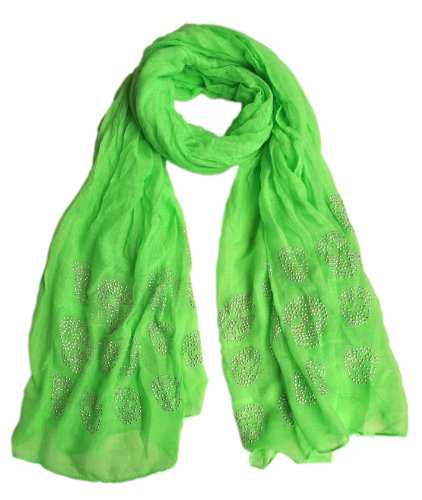 Chèche / Echarpe / Foulard "Tête de Mort" avec strass - 7773 - Vert Fluo