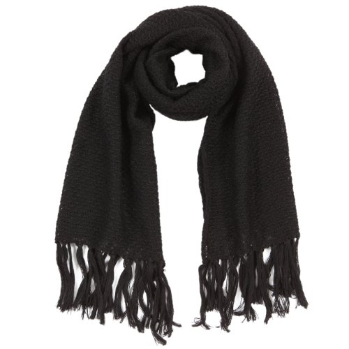 Baby Alpaga - Longue étole en maille avec franges (dim : 260cm x 60cm) 100% en laine de baby alpaga Echarpe noire en maille avec franges - 100% baby alpaga